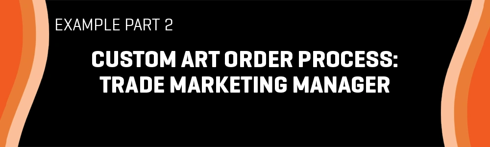 Let’s take one of their simplest jobs as an example and look at the logistics of a single custom art order for a retailer from the perspective of just two of the key players in a trade marketing team – the field personnel and trade marketing manager. The complexity of the task is staggering, and to do this manually requires a great deal of resources, time and skill.
